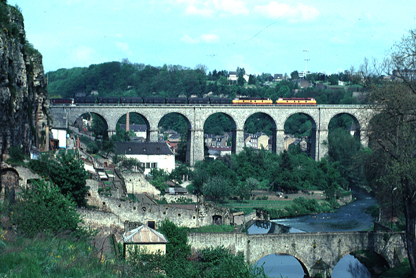 CFL 1817 AA16C crossing the beutiful stone arch bridge near downtown Luxembourg. Photo by Larry Russell.