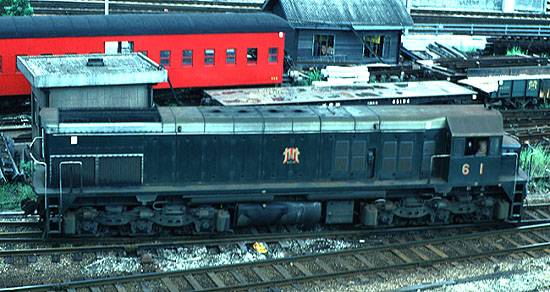 KCR 61 G26CW EMD Co-Co 2000hp . Photo October 22 1982 by Peter Jzilezck. This is the old paint scheme and shows that the locomotive was delivered without hep.