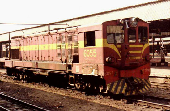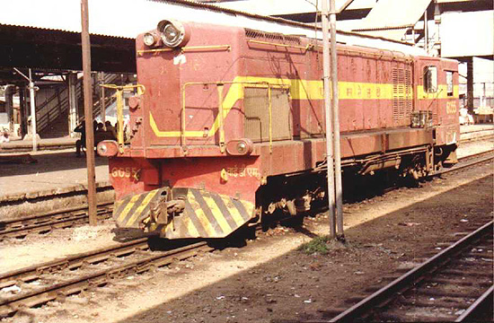 Indian Railways 6055 Class YDM3. EMD GA12 1-B-B-1 1200hp with Electro-mechanical drive. Two traction motors underslung the frame and driving the axels through cardan shafts and helical gears. Photo by Viraf Mulla at Ahmedabad.
