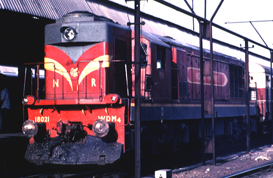GT16 18021 EMD 2400hp (derated to 2250 hp) Co-Co, class WDM4 at an unknown location (probably Mughal Sarai) by Fritz Lehman.