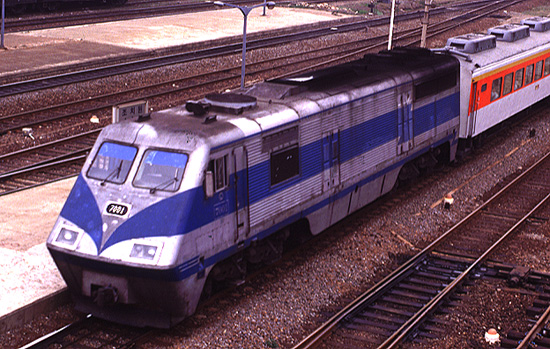KNR 7001 Hyundai FT36HCW Co-Co 3500 hp at Pusan October 28 1994 by Sheldon Perry.