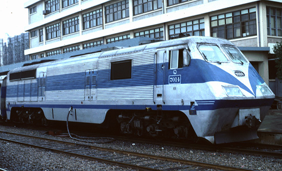 KNR 7014 Hyundai FT36HCW Co-Co 3500 hp at Pusan January 7 1991 by Larry Russell.