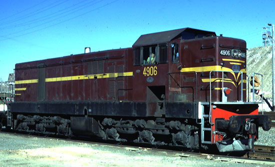 NSWGR 4906 Clyde G8C 875 hp Co-Co at Broken Hill NSW January 10 1975 by Philip Graham.