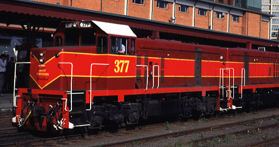 GNL 377 Clyde G8B 875 hp Bo-Bo at Melbourne November 11 1996 by Colin Gray. Formerly Victoria Railways T class 377.