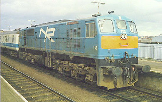 NIR 113 EMD JT22CW Co-Co 2250 hp. Photo from Martin Baumann at Belfast March 28 1986.