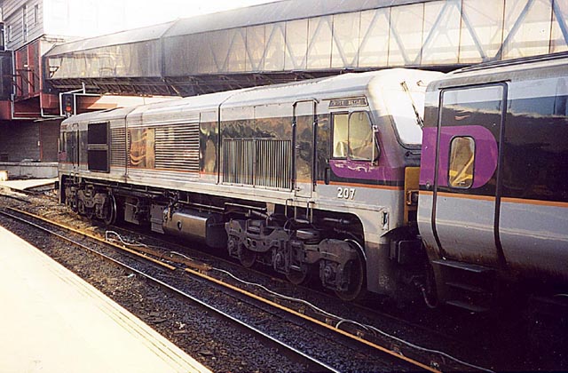 IE 207 GMLG JT42HCW Co-Co 3000 hp. Enterprise paint. Photo by Ken O'Neill.
