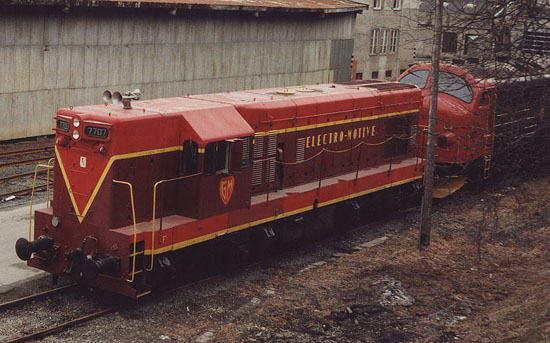 GMDL G12 7707, Marienborg (Trondheim), Norway, April 28, 1996. This is the demonstrator that was sold to Swedish State Rys. and is now preserved. Note that dynamic brakes have been removed.