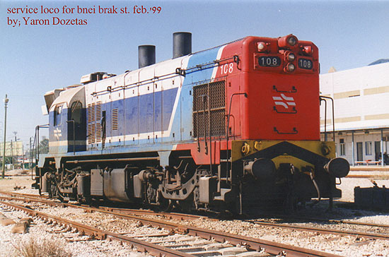 IR 108 EMD G12 Bo-Bo 1310 hp at Bnei Brak station February 1999 by Yaron Dozetas.