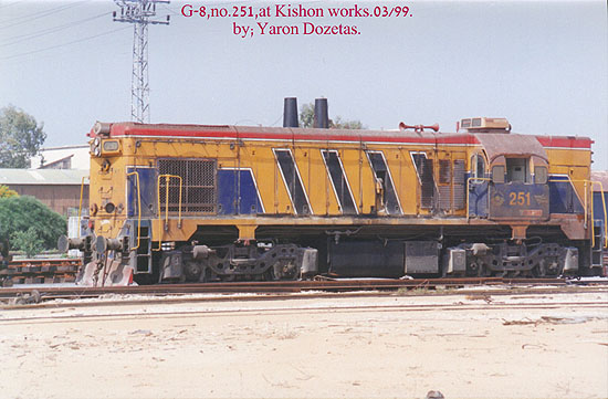 ISR 251 EMD G8 Bo-Bo 875 hp at Kishon Works, March, 1999 by Yaron Dozetas.