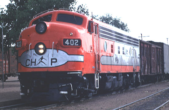 Ch-P 402 EMD F7A 1500 hp Bo-Bo Photo by Joe McMillan at Cuauhtemoc, May 5, 1971.