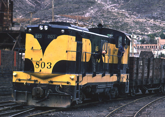 CyZ 803 EMD GA18 B-B 1000 hp at Concepcion del Oro January 1970 by Ken McCutcheon.