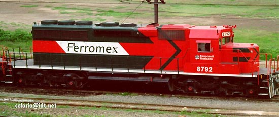 Ferromex 8792 EMD SD40-2 3000 hp Co-Co Photo by Juan M. Celorio August 1998.