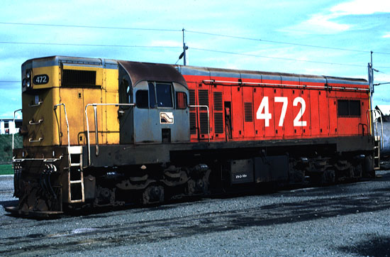 NZGR 472 G12A A1A-A1A 1310 hp at Palmerston North, March 14, 1986 by Jim Buckley. This is renumbered from 1444.