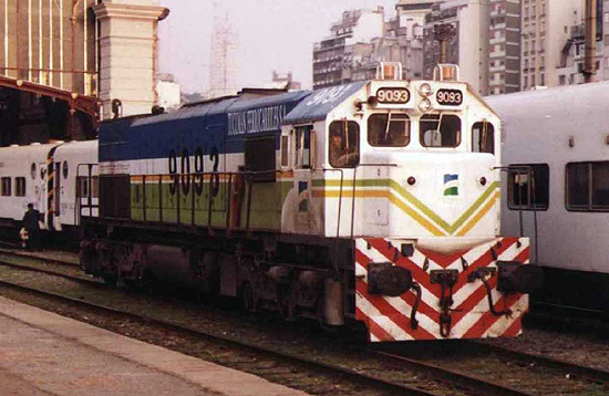 TUFESA 9093 GMIC GT22CW Co-Co 2250 hp at Buenos Aires - Retiro station. This service runs from Buenos Aires to Tucum·n. Photo by Pablo Lacoste.