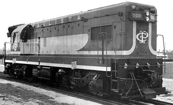 CPEF 700 EMD G12W4 Bo-Bo 1310 hp EMD photo, from Antonio Augusto Gorni. Colors are Blue, Cream & Yellow, the same as Fepasa 7068 shown next page.