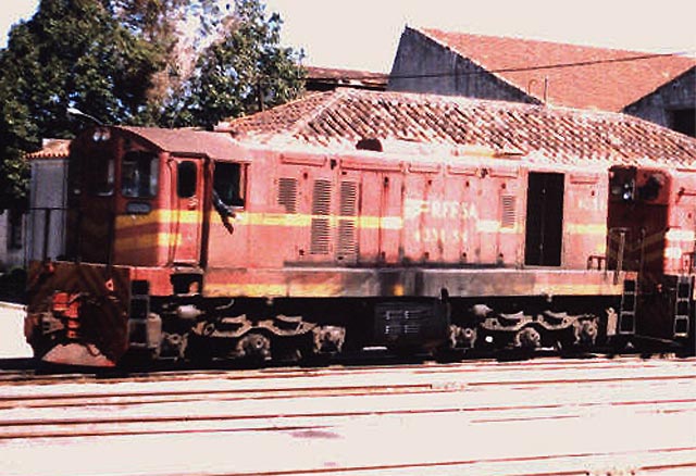 RFFSA 4031-5N is a GL8 A1A-A1A 875 hp 1 meter gauge. Photo by Alfredo Rodrigues, at Rio Grande station - RGS, May 10, 1993..