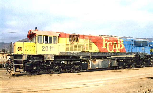 FCAB 2011 GL26C Clyde 2000 hp Co-Co. Antofagasta Shed June 10 2003. Photo by