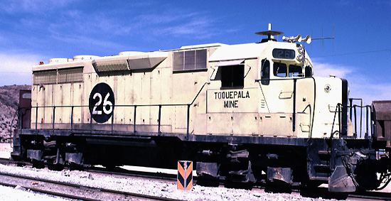 SPC 26 EMD GP28 1800 hp Bo-Bo at Toquepala April 21 1980, Larry Russell photo.